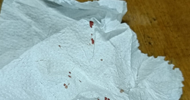 She said the cover was loosely held on with tape and fell off when she touched it. Inside, she saw multiple small puncture marks in the toilet paper, along with what appeared to be traces of blood.